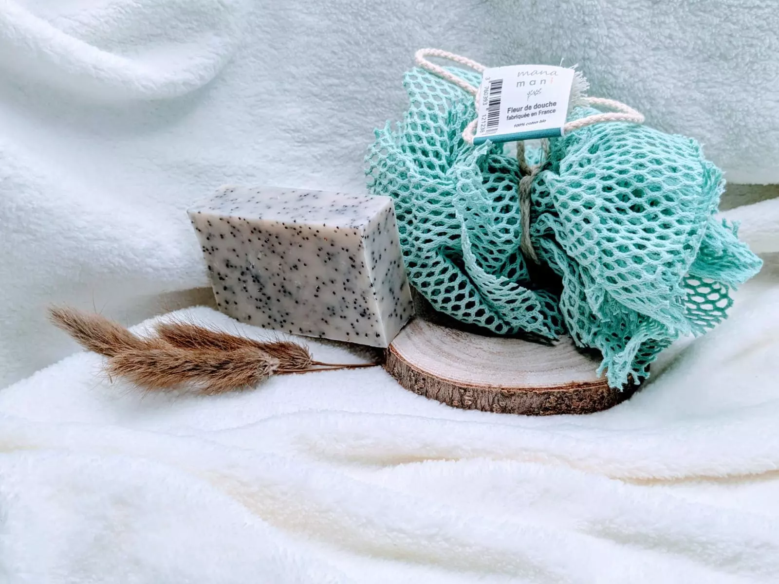 La Fleur de douche zéro déchet offre une mousse onctueuse pour un lavage en douceur.