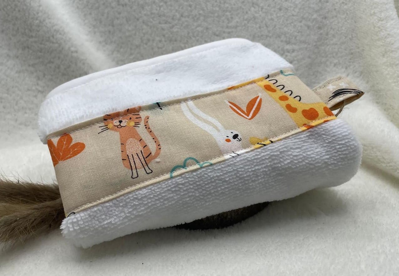 Pour parfaire cet accessoire, chaque gant de toilette enfant se pare de jolis imprimés ludiques en coton, apportant une touche d’élégance et de gaieté dans votre salle de bain. Une attache intégrée en tissu permet de suspendre facilement le gant après usage, favorisant une circulation de l’air optimale pour un séchage rapide et une hygiène préservée. Durable et facile à entretenir, ce gant supporte parfaitement les cycles répétés en machine. Pour maintenir durablement la souplesse originelle de l’éponge de bambou et l’éclat des motifs imprimés, nous recommandons un séchage à l’air libre et déconseillons l’usage du sèche-linge, afin que cet accessoire artisanal accompagne la croissance de votre enfant pendant de longues années.