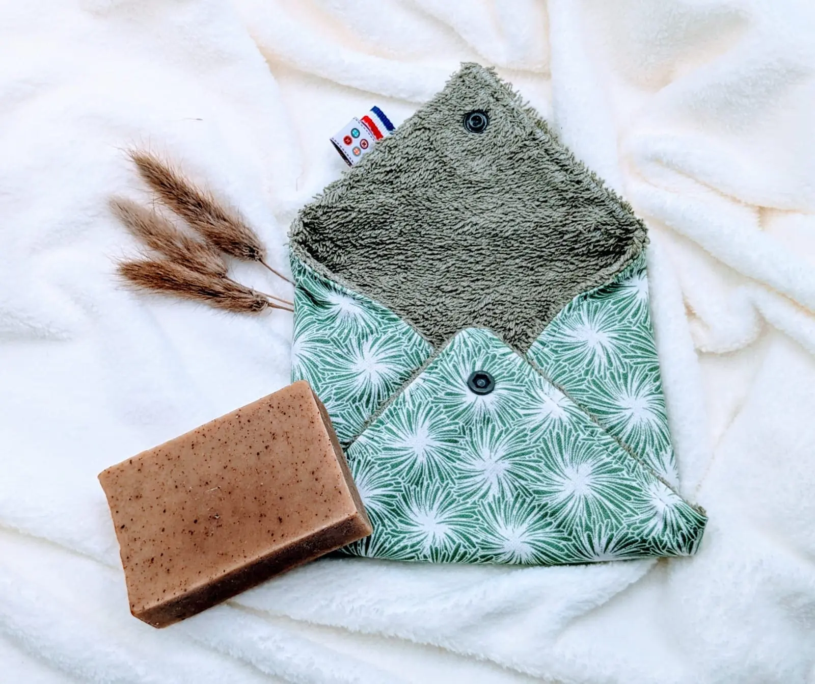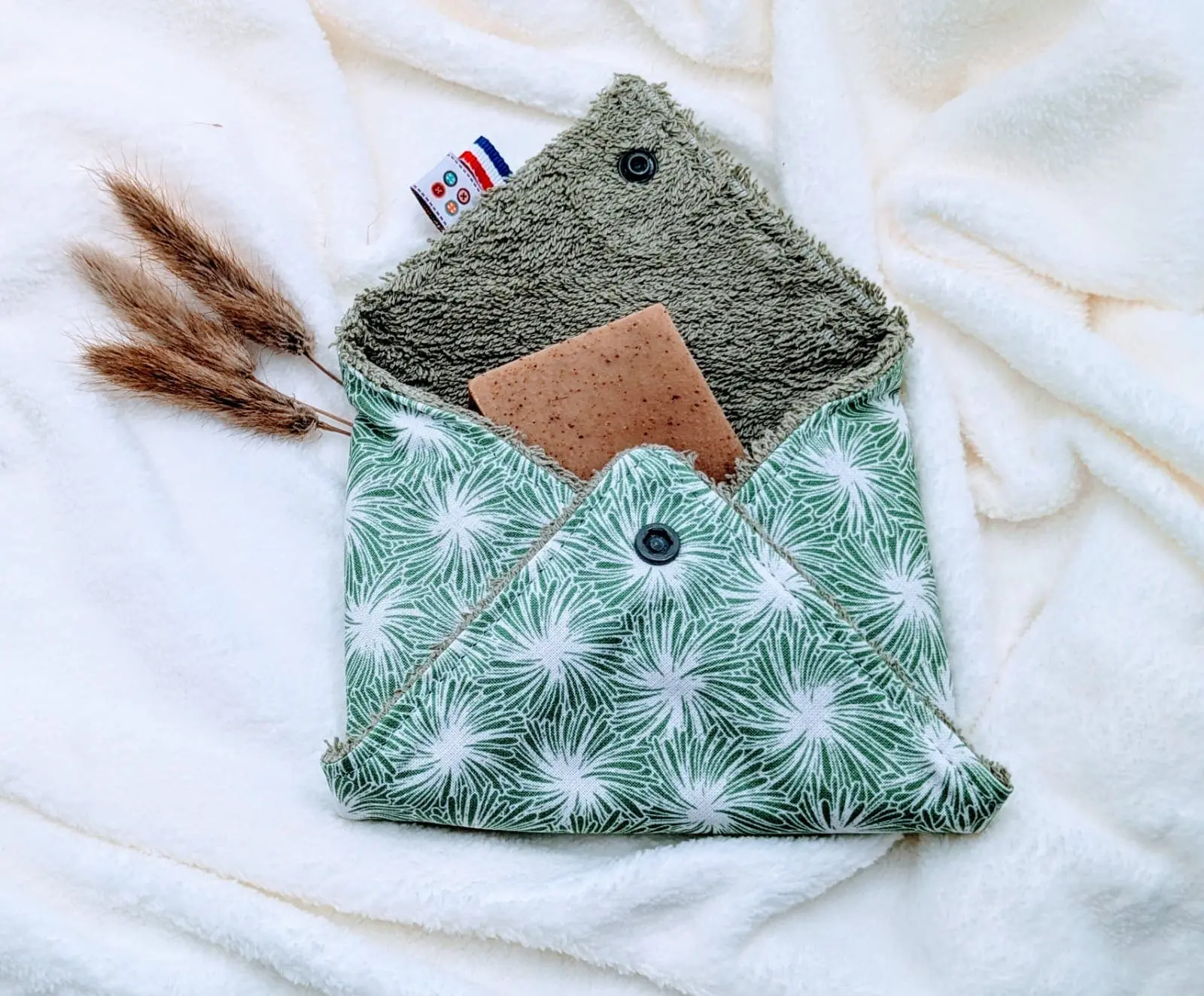 Notre pochette kimono est dotée de deux rabats qui se replient l’un sur l’autre, sans pression, fermeture éclair ou autre système de fermeture. Malgré cette simplicité, les rabats sont parfaitement conçus pour garder le reste de votre trousse de toilette au sec. Grâce à leurs débordements, votre savon reste bien en place et confortablement protégé à l’intérieur de la pochette kimono.