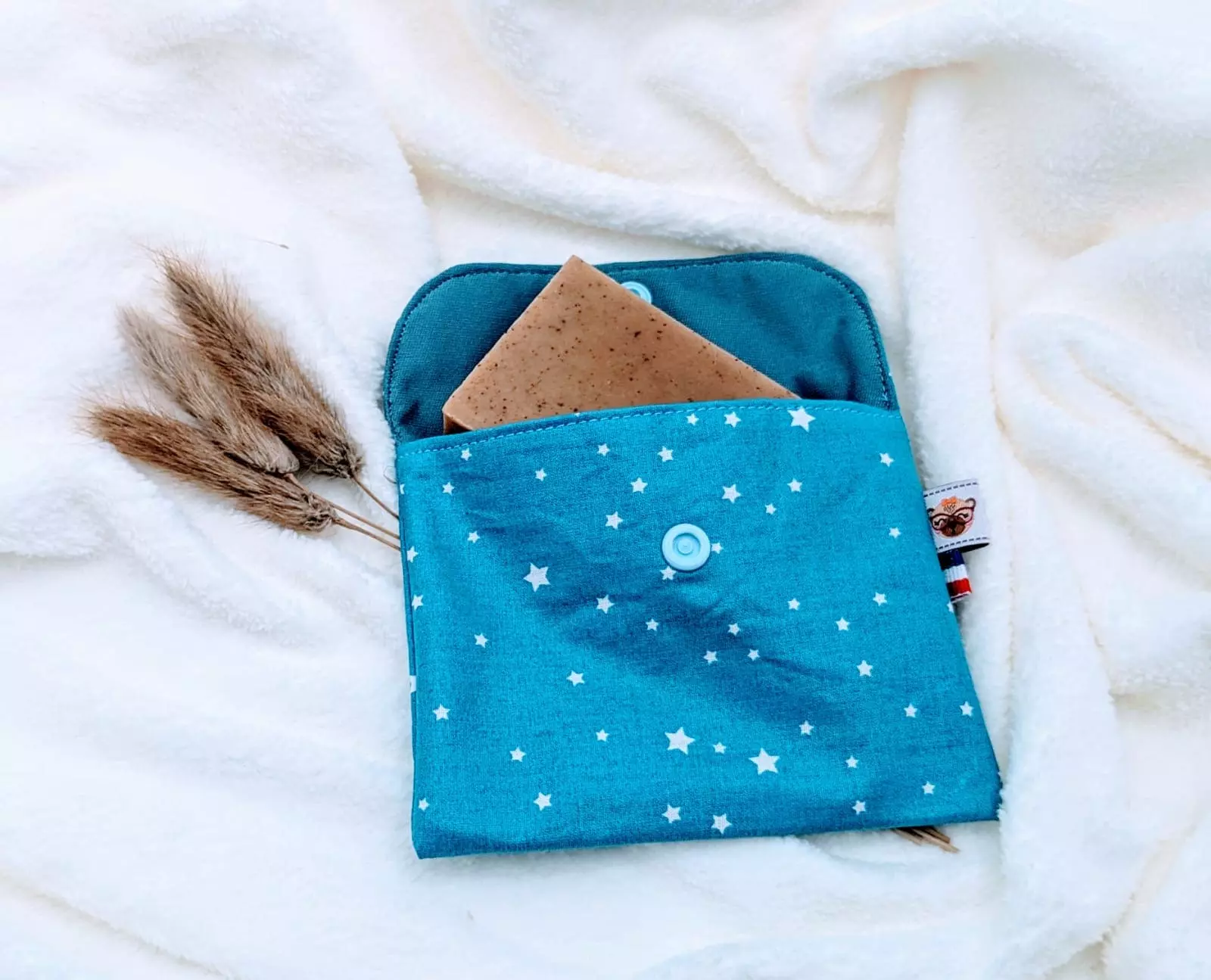 Notre pochette pression est confectionnée artisanalement, en France, avec soin à partir de tissu coton doté d’un revêtement OEKO-TEX, garantissant des matériaux respectueux de votre santé et de l’environnement. Ce revêtement imperméable permet de transporter votre savon encore mouillé sans risque de fuite dans votre pochette pression, tout en maintenant une texture douce et agréable au toucher.