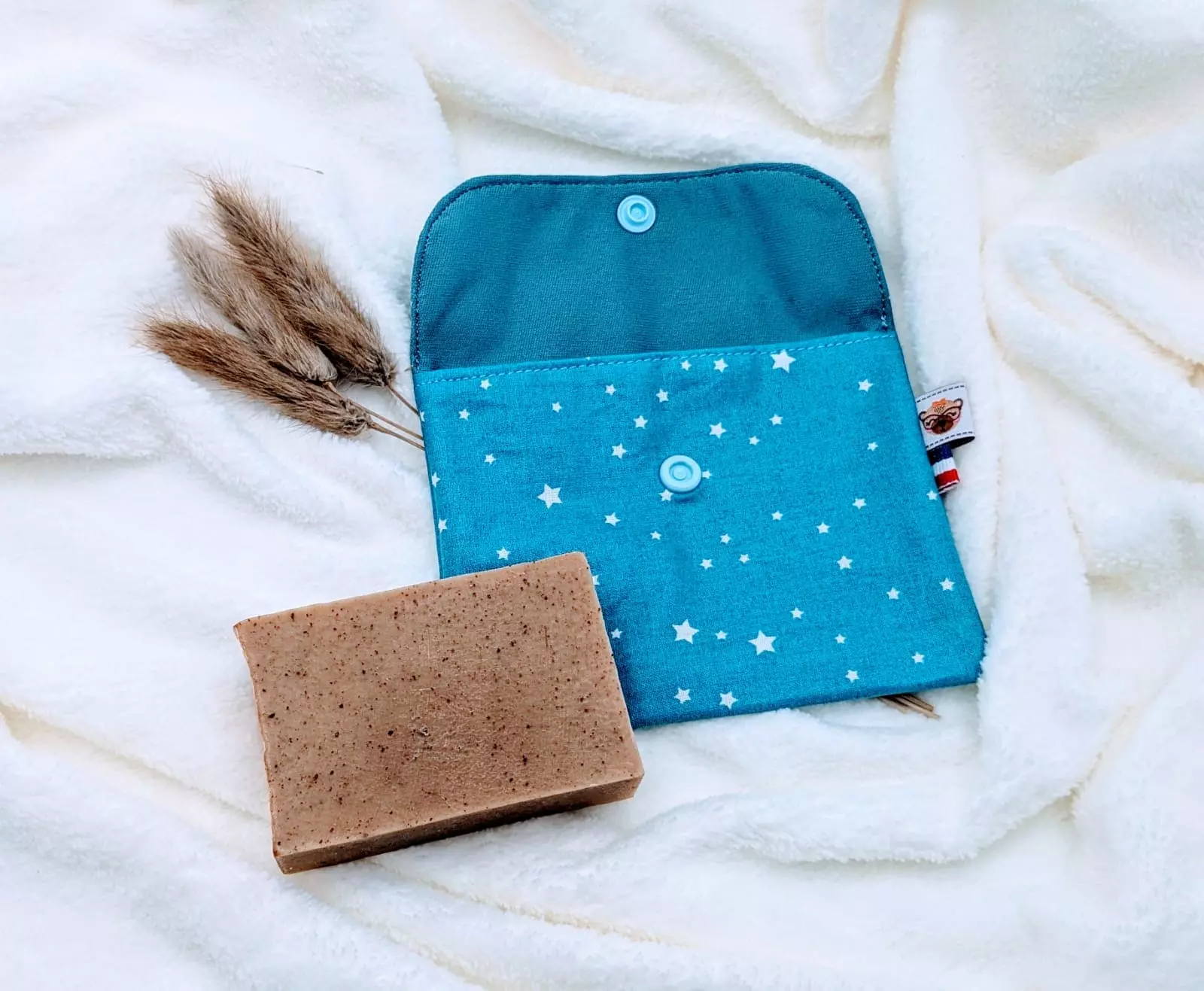 Notre pochette pression artisanale, créée avec soin par Made By Ta’Soso à Tignes. Fabriquée en tissu coton enduit imperméable certifié OEKO-TEX, notre pochette pression est l’accessoire idéal pour transporter votre savon, même lorsqu’il est encore mouillé. Pratique, écologique et résistante, la pochette pression protège vos affaires tout en préservant votre savon. Compacte et élégante, notre pochette pression devient rapidement un indispensable pour vos déplacements. Alliez artisanat, qualité et praticité avec notre pochette pression unique !