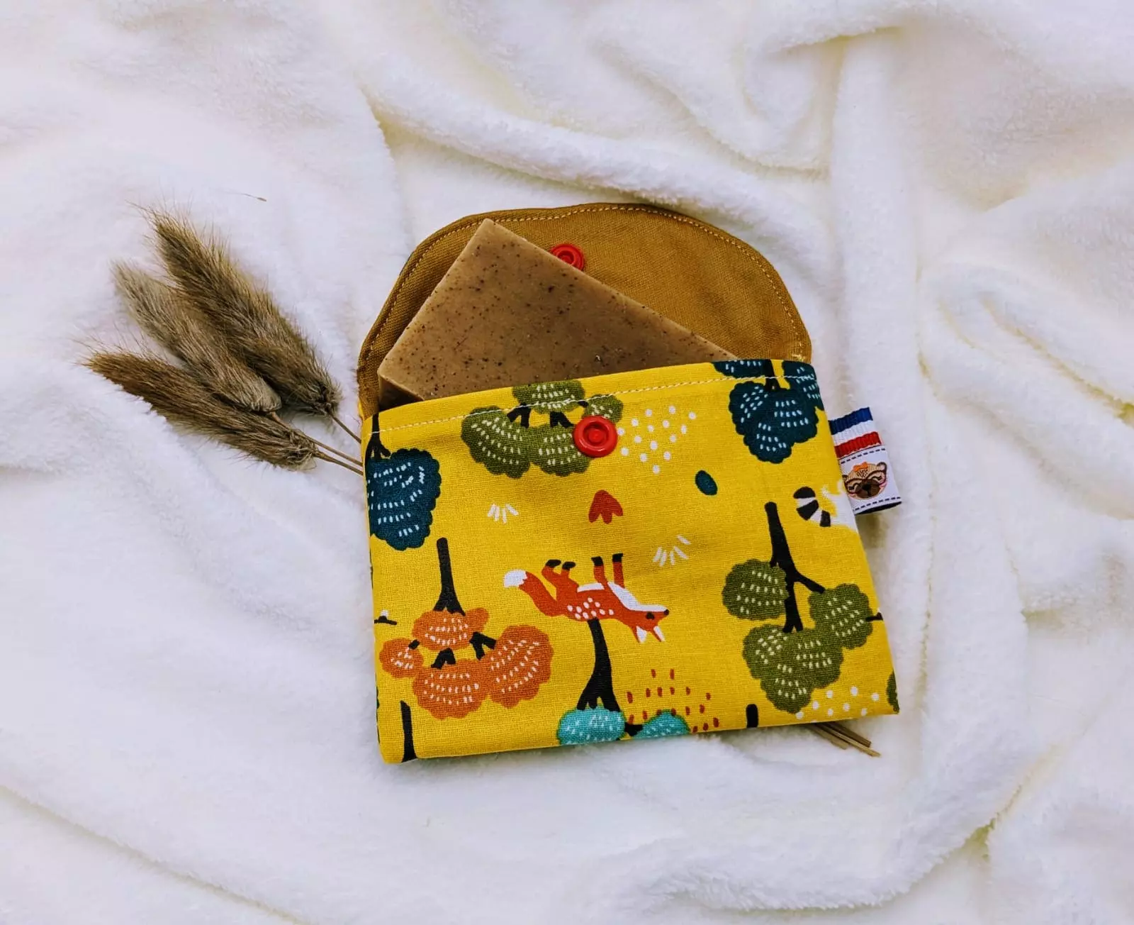 Découvrez notre pochette pression, un accessoire pratique et écologique fabriqué artisanalement en France, à Tignes par Made By Ta’Soso. Conçue en tissu coton enduit imperméable, certifiés OEKO-TEX, notre pochette pression est idéale pour transporter votre savon, même mouillé. Avec des dimensions compactes d’environ 12 cm x 10 cm, notre pochette pression se glisse facilement dans vos affaires. Lavable en machine à 40°C (sèche-linge non recommandé), notre pochette pression est durable et facile à entretenir. Notre pochette pression est un produit d’artisanat local, alliant qualité, savoir-faire français et respect de l’environnement !