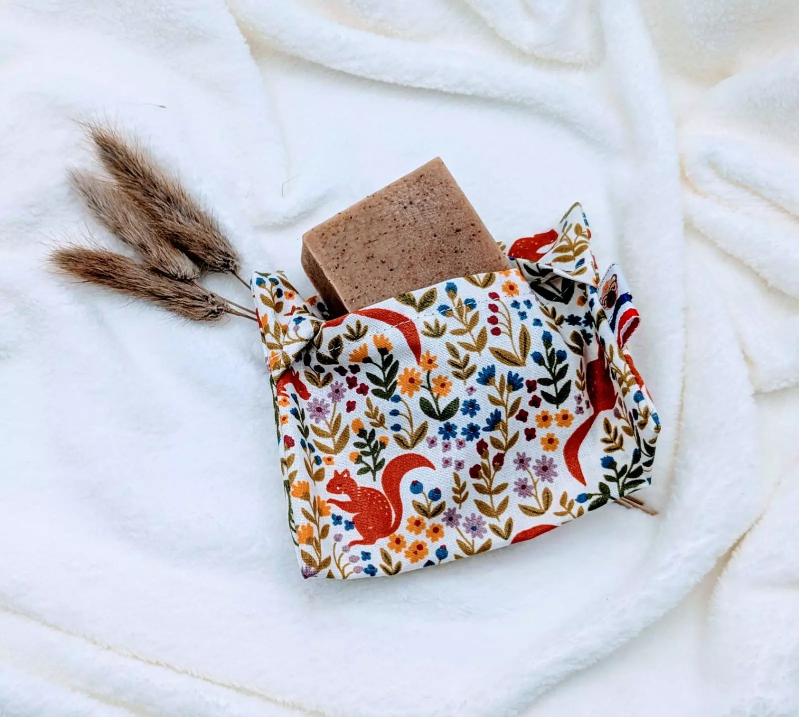 Notre pochette sandwich, avec ses dimensions d’environ 14 cm x 11 cm, est parfaitement adaptée pour accueillir un savon standard de 100 g.