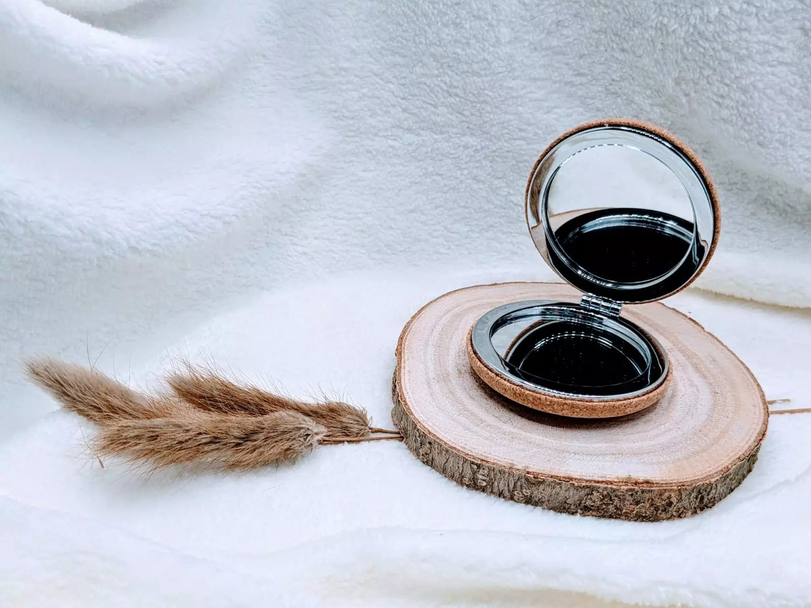 Miroir en liège de poche à rabat – Naturel, pratique et élégant